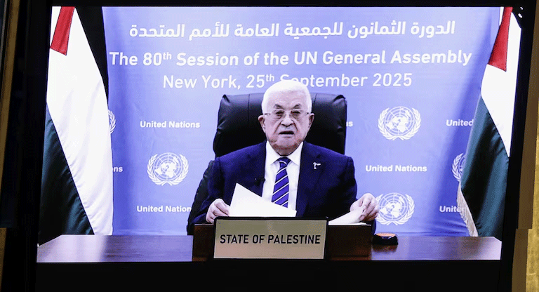 Hablando a través de un enlace de video después de que la administración Trump le negara a él y a su delegación los visados de entrada, Abbas presentó uno de los discursos más esperados de la semana, ya que los reconocimientos del Estado palestino han ocupado un lugar central en la reunión de la ONU.