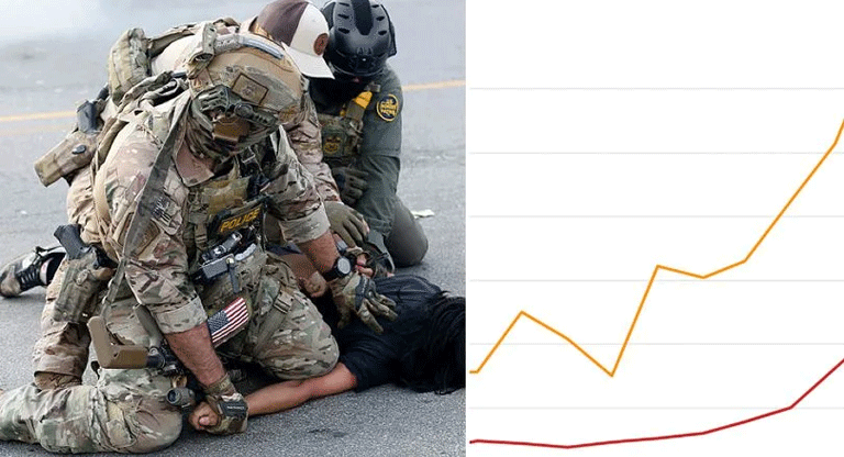 Pero los datos gubernamentales sobre las detenciones en curso cuentan una historia diferente, de ciudad en ciudad y de costa a costa.