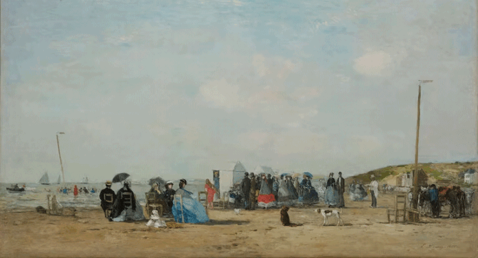 El título con que el Marmottan presentó la muestra fue Eugène Boudin, el padre del impresionismo: una colección privada. Además de jugar con la figura de “padre” del movimiento que en general se le atribuye a Monet (y que es algo discutible porque no ofrece la complejidad de matices que tuvo la relación de Boudin con el impresionismo), proponía una determinada lectura. Lo que podía verse en los diversos salones de la mansión cercana al Bois de Boulogne, en el exquisito XVI arrondissement, eran ochenta obras de Boudin más algunos préstamos de otros museos, solicitados para generar, precisamente, un diálogo entre las piezas. Esto es lo que ocurría, por ejemplo, con una pintura de Boudin de Deauville y otra, de la misma playa, de Monet.