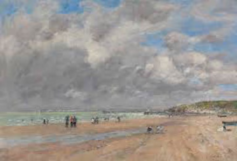 Imagino, querido lector, que no lo conocés y es razonable ya que el suyo no es uno de los nombres más famosos de la historia del arte. Sin embargo, fue un artista descomunal, fue maestro de Monet y su obra es precursora del impresionismo, acaso el movimiento artístico más popular. Eugène Boudin (1824–1898) fue el primer artista que eligió poner el foco en el aire, el que sacó el caballete del atelier y lo llevó a la playa para observar cómo es el afuera en lugar de recordar o imaginarlo. Fue, también, quien logró que la pintura comenzara a registrar los matices y los cambios en la luz y en las condiciones atmosféricas, convirtiendo esta observación en un tema en sí mismo. Lo de Boudin fue una conquista técnica y -sobre todo- una novedad entre los motivos de la pintura: el tiempo, el clima, como tema central de la obra de arte.