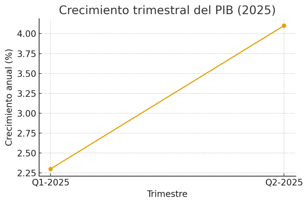 Crecimiento trimestral del PIB (Q1 y Q2 de 2025). Fuente: Banco Central de Reserva