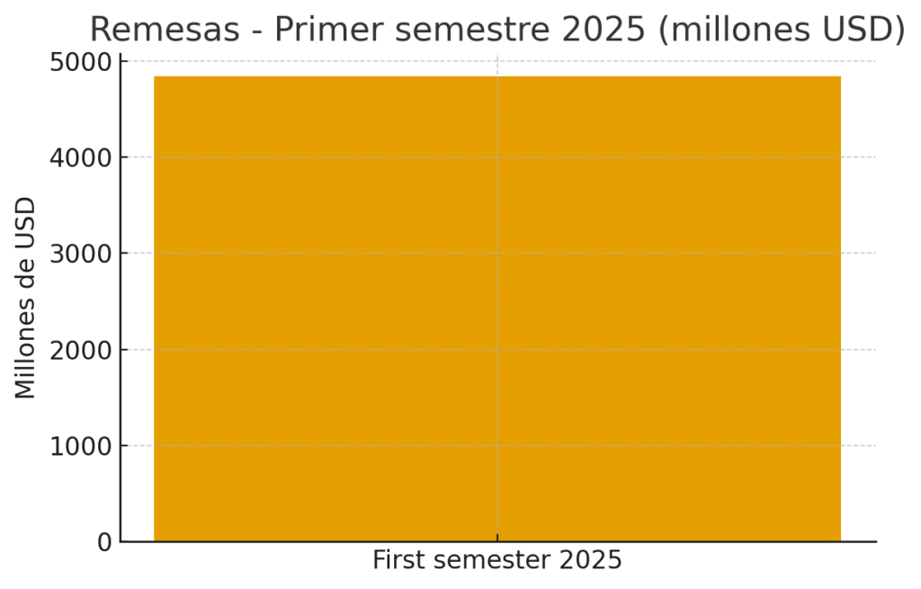 Remesas — total del primer semestre 2025 (4,837.69 millones USD). Fuente: BCR