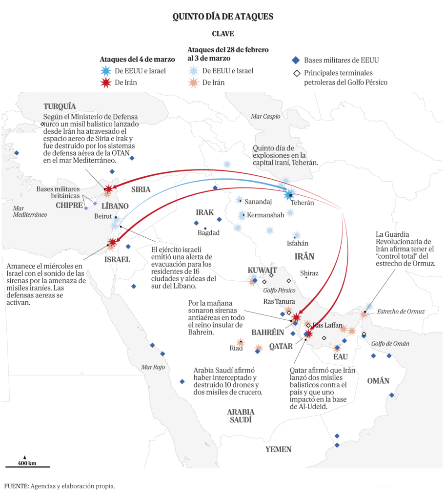 Tras el incidente, el ministro de Exteriores turco, Hakan Fidan, advirtió en una llamada a su homólogo iraní, Abbas Araghchi, que evite «cualquier paso que pueda conducir a la propagación del conflicto» desatado el sábado y que ya ha afectado a una decena de países de la región.